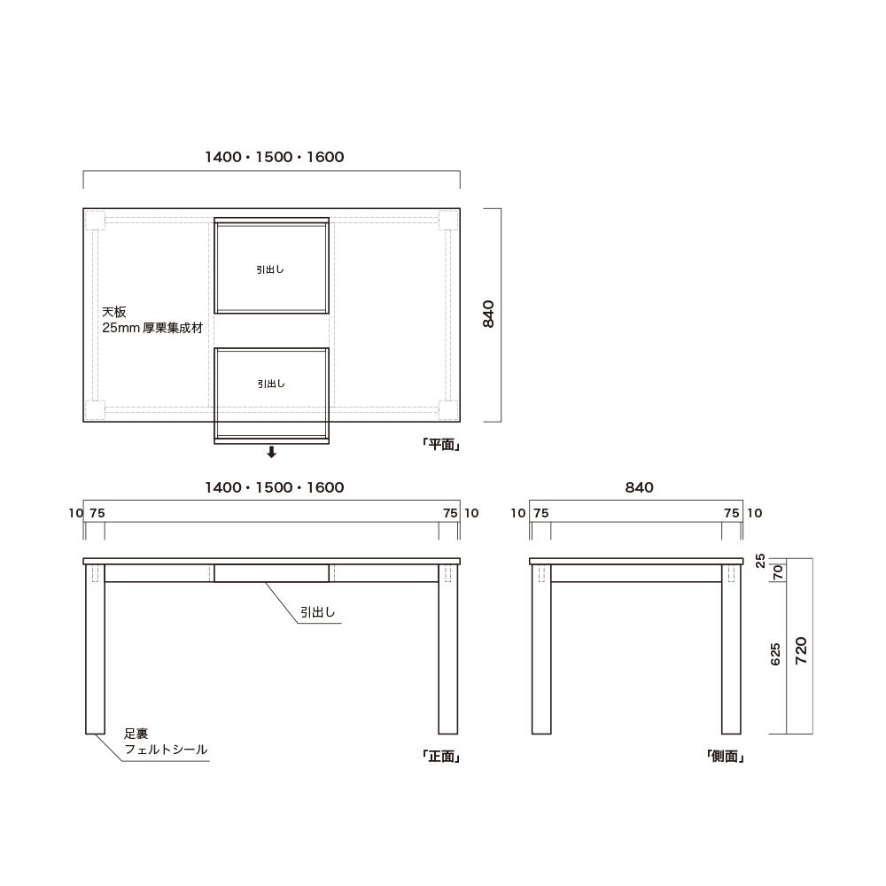熊本くりの引出し付きダイニング(幅140cm 150cm 160cm 栗材)テーブル幅、カラー、塗装方法選択可