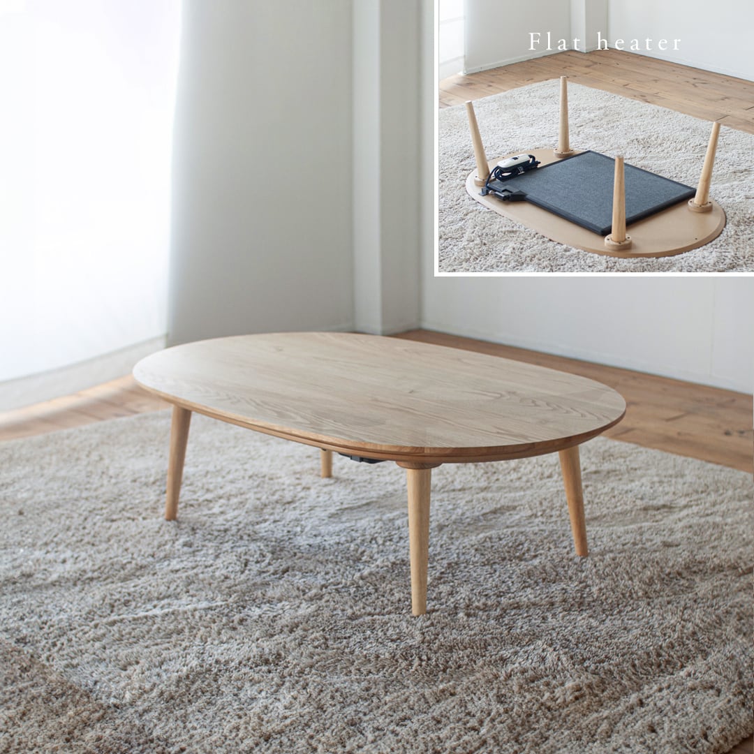 くりのダ円突板こたつ / かけ布団付き(幅120cm・フラットヒーター付・こたつふとん3色選択)